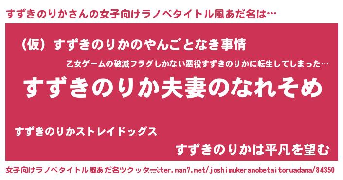| 肩書あだ名 | 『すずきのりか助手』『すずきのりか団長』 |