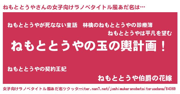 | 意味不明あだ名 | 『もやし科ねもととうや属』 |