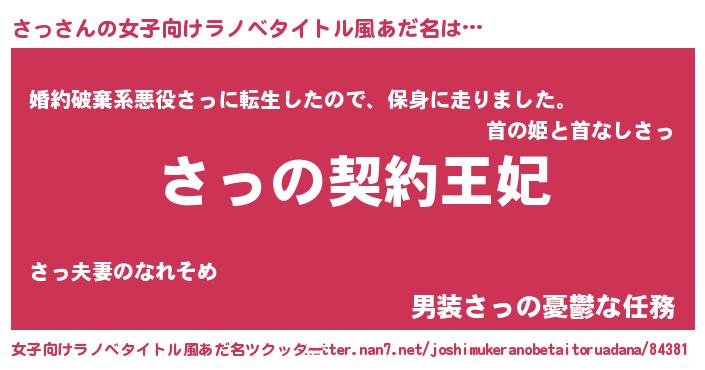 | 男性向けラノベタイトル風あだ名 | 『さっという概念が存在しない退屈な世界 』 |