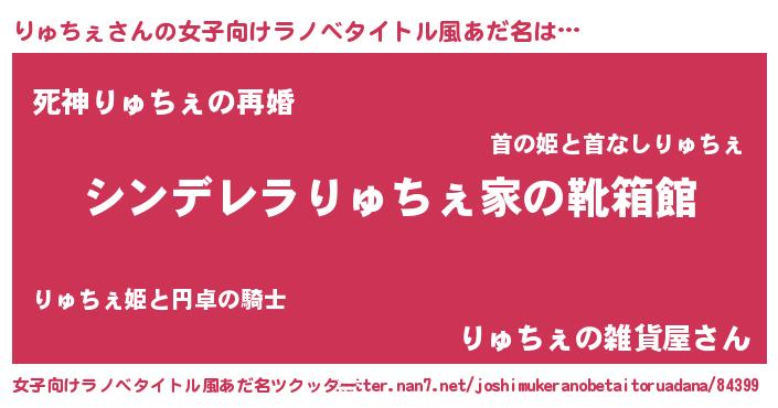 | 男性向けラノベタイトル風あだ名 | 『冴えないりゅちぇの育てかた』 |