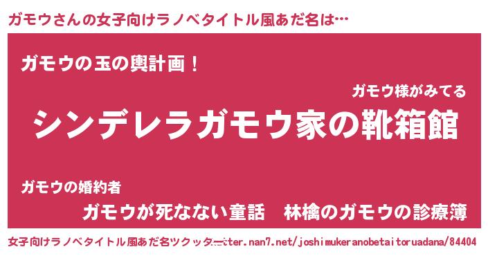 | ヒーロー風カッコイイあだ名 | 『仮面ガモダー』『天弓騎士ガモ』 |