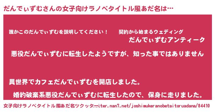 | 男性向けラノベタイトル風あだ名 | 『この素晴らしい世界にだんでぃずむを!』 |