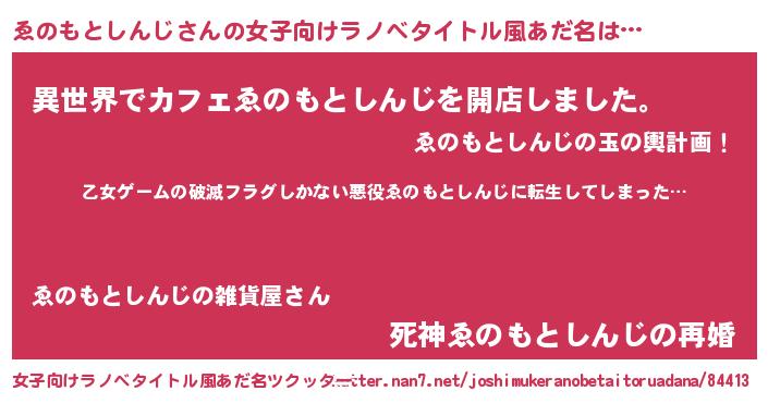 | 意味不明あだ名 | 『住所不定無職ゑのもとしんじ(43歳)』 |
