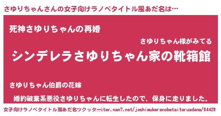 | 男性向けラノベタイトル風あだ名 | 『緋弾のサユリチャン』 |