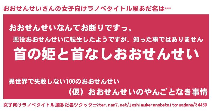 | ヘコむあだ名 | 『おおにゅー』『おおせんせい(爆)』 |