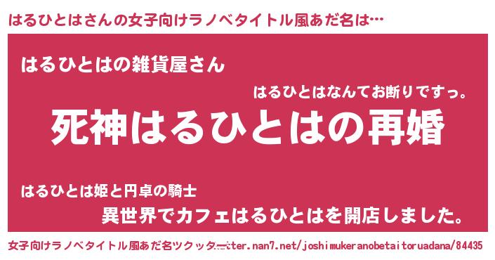 | ヒーロー風カッコイイあだ名 | 『慈愛の使者はるひとは』 |