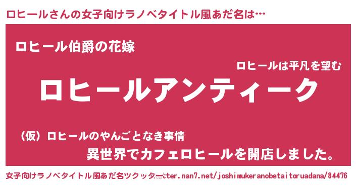 | ポケモン風あだ名 | 『ロヒセウス』『ロヒーダネ』 |