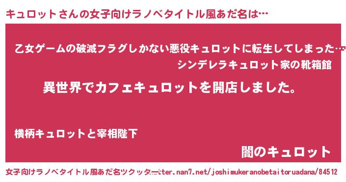 | 意味不明あだ名 | 『永久保存キュロット』『自称キュロット』 |