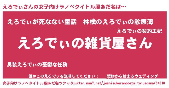 | 男性向けラノベタイトル風あだ名 | 『やはりえろでぃの青春ラブコメはまちがっている 』 |