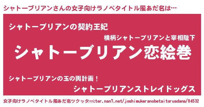 | 男性向けラノベタイトル風あだ名 | 『ノーゲーム・ノーシャトーブリアン』 |