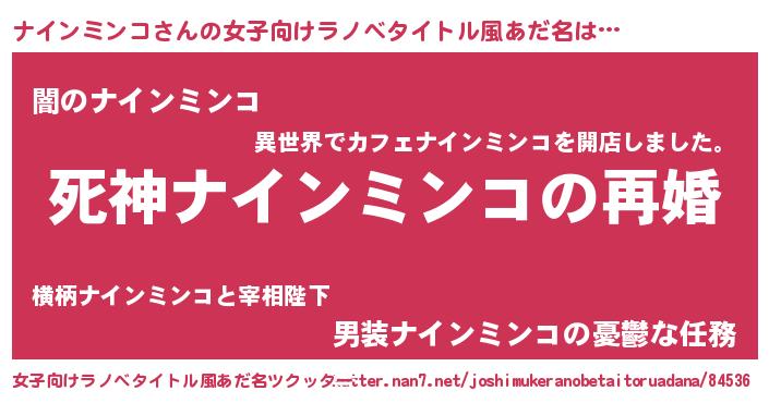 | 男性向けラノベタイトル風あだ名 | 『ノーゲーム・ノーナインミンコ』 |