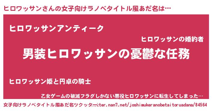 | 男性向けラノベタイトル風あだ名 | 『冴えないヒロワッサンの育てかた』 |