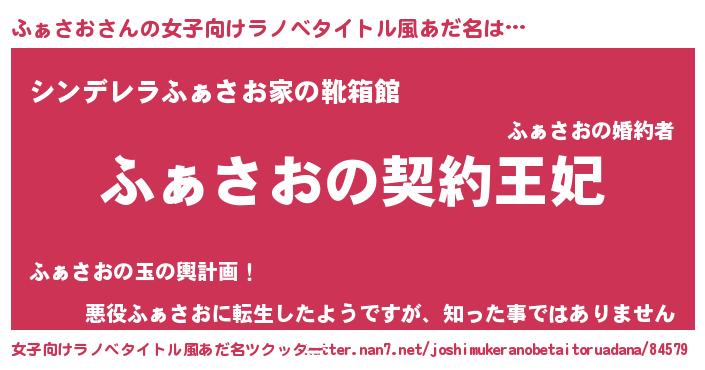 | 胡散臭い通販商品みたいなあだ名 | 『来世でも幸せになれる健康食品…その名も「ふぁさお」』 |