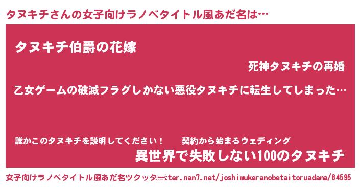 | 男性向けラノベタイトル風あだ名 | 『この素晴らしい世界にタヌキチを!』 |