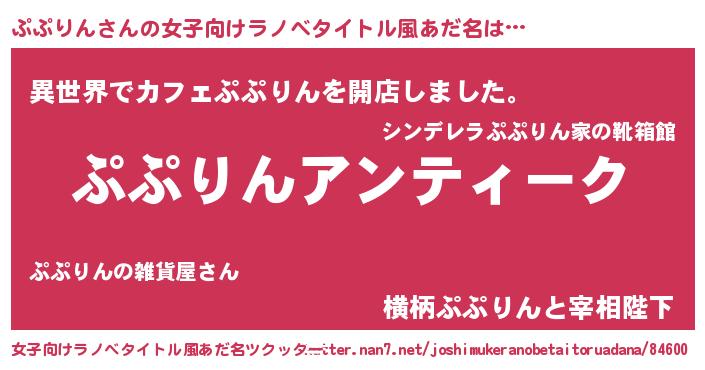 | 胡散臭い通販商品みたいなあだ名 | 『テレビで話題の高麗人参…その名も「ぷぷりん」』 |