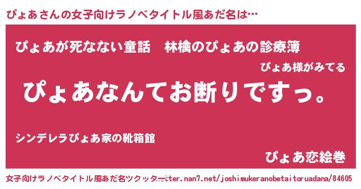 | 男性向けラノベタイトル風あだ名 | 『魔法科高校のぴょあ』 |