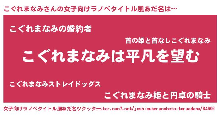 | ポケモン風あだ名 | 『ヒコグレマナミ』『コグレダネ』 |