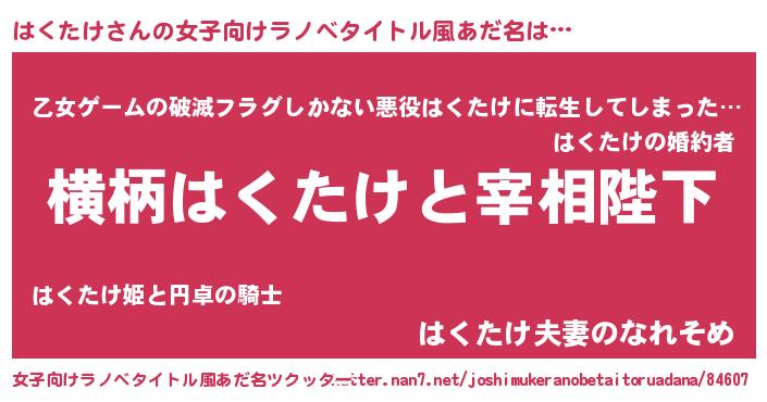 | 伝説のあだ名 | 『救世主となる占い師はくたけ』 |