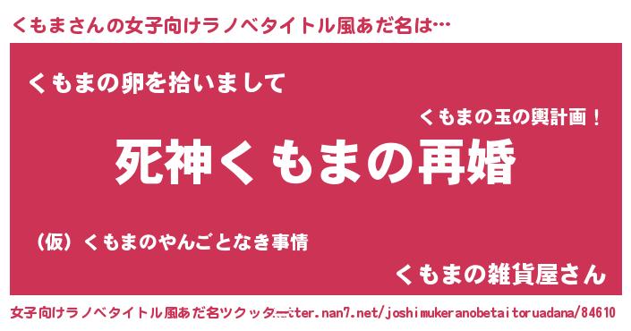 | 男性向けラノベタイトル風あだ名 | 『ノーゲーム・ノークモマ』 |