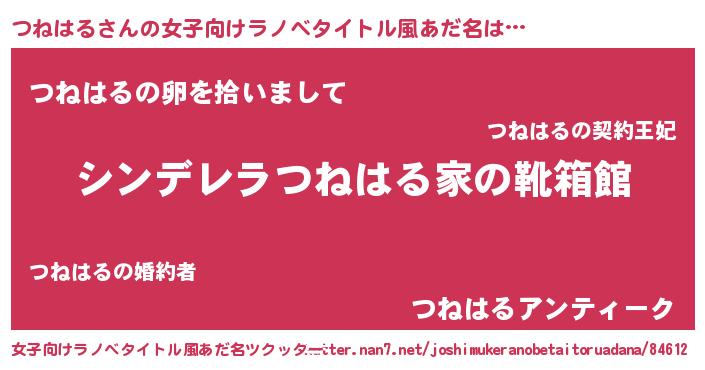 | 胡散臭い通販商品みたいなあだ名 | 『信頼と実績のサプリメント…その名も「つねはる」』 |