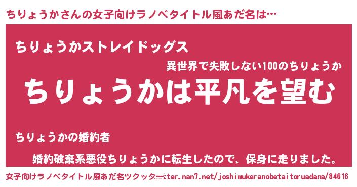 | 胡散臭い通販商品みたいなあだ名 | 『信頼と実績のサプリメント…その名も「ちりょうか」』 |