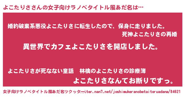 | 意味不明あだ名 | 『永久保存よこたりさ』『自称よこたりさ』 |