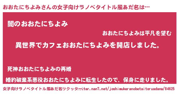 | 男性向けラノベタイトル風あだ名 | 『誰もが恐れるあのおおたにちよみが、ぼくの専属メイドになるようです。』 |