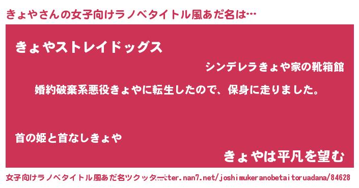 | 意味不明あだ名 | 『たけのこ科きょや属』『自称きょや』 |
