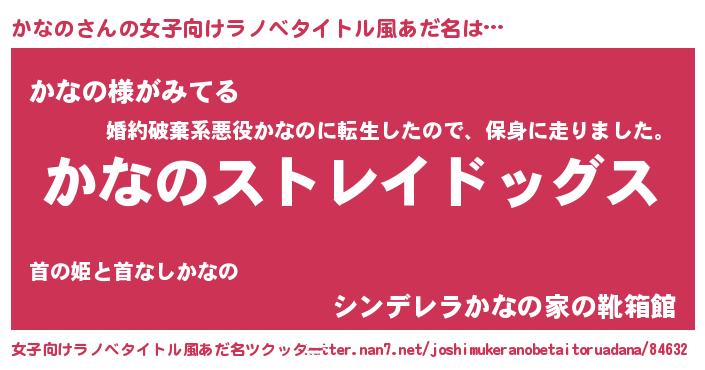| ヘコむあだ名 | 『かな太郎』『かなの(遠い目)』 |
