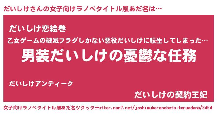 | 男性向けラノベタイトル風あだ名 | 『うちのだいしけが世界を掌握している!』 |