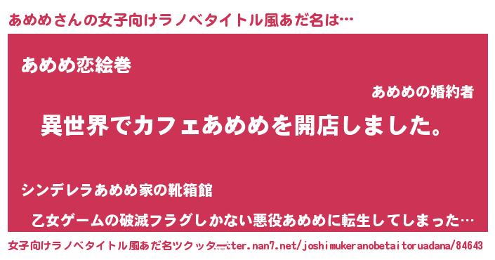 | 男性向けラノベタイトル風あだ名 | 『誰もが恐れるあのあめめが、ぼくの専属メイドになるようです。』 |