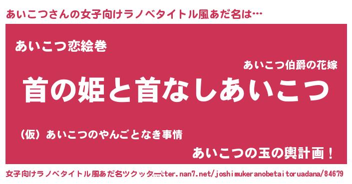| 男性向けラノベタイトル風あだ名 | 『はたらくあいこつさま!』 |