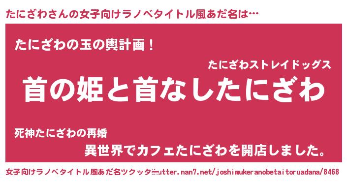 | 胡散臭い通販商品みたいなあだ名 | 『絶対に幸福をもたらす健康食品…その名も「たにざわ」』 |