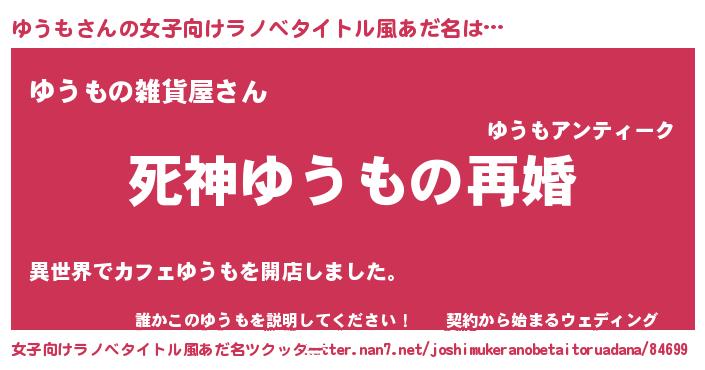 | 男性向けラノベタイトル風あだ名 | 『ノーゲーム・ノーユウモ』 |