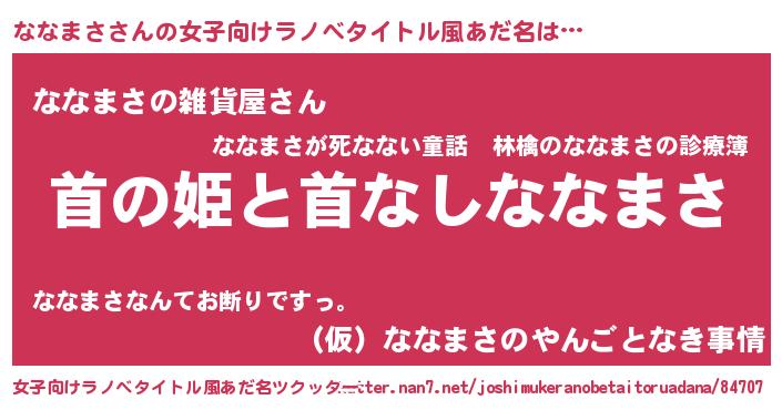 | 男性向けラノベタイトル風あだ名 | 『はたらくななまささま!』 |