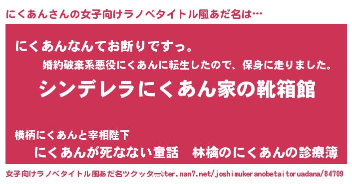 | ヘコむあだ名 | 『にくあん(苦笑)』『にく太郎』 |