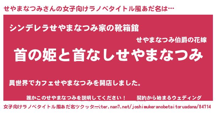 | 男性向けラノベタイトル風あだ名 | 『はたらくせやまなつみさま!』 |