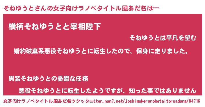 | 男性向けラノベタイトル風あだ名 | 『転生したらそねゆうとだった件』 |