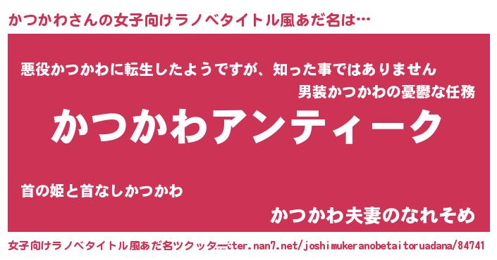 | 意味不明あだ名 | 『自称かつかわ』『永久保存かつかわ』 |