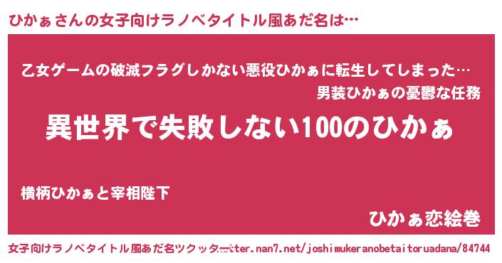 | 男性向けラノベタイトル風あだ名 | 『ひかぁという概念が存在しない退屈な世界 』 |