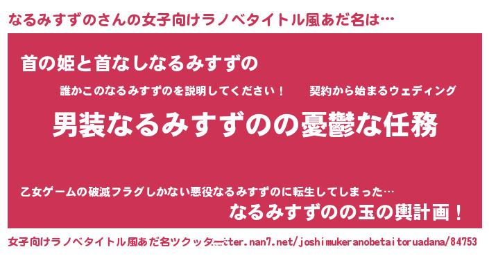 | ヒーロー風カッコイイあだ名 | 『スーパーナルミスズノ』『仮面ナルダー』 |