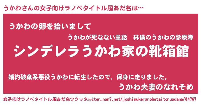 | ヒーロー風カッコイイあだ名 | 『暗黒騎士ウカ』『愛の使者うかわ』 |