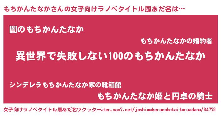 | 男性向けラノベタイトル風あだ名 | 『もちかんたなかという概念が存在しない退屈な世界 』 |