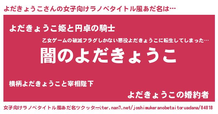 | 意味不明あだ名 | 『自称よだきょうこ』 |