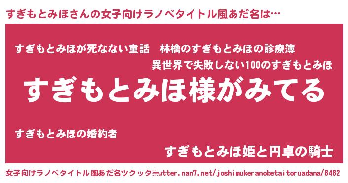 | 胡散臭い通販商品みたいなあだ名 | 『全米が絶賛したサプリメント…その名も「すぎもとみほ」』 |