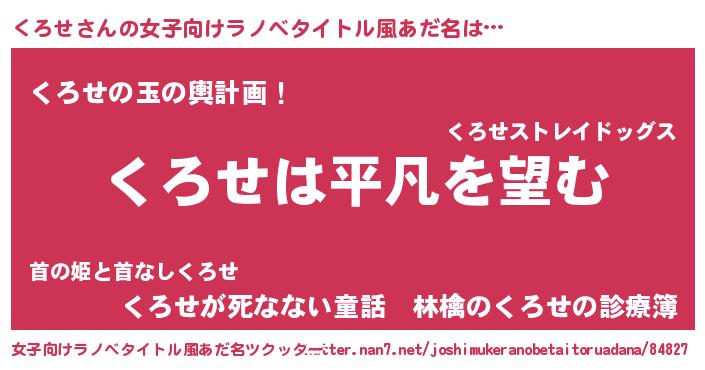 | 意味不明あだ名 | 『とにかく怪しいくろせ』『自称くろせ』 |