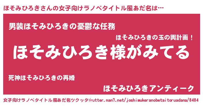 | 男性向けラノベタイトル風あだ名 | 『ほそみひろきの嫁は女の子じゃないと思った?』 |
