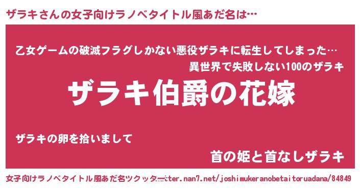 | ファンタジー風あだ名 | 『エターナルザラキー』『ヴァルザラーナ』 |