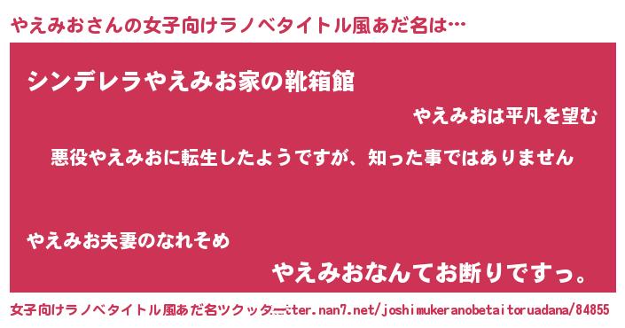 | 意味不明あだ名 | 『住所不定無職やえみお(53歳)』 |