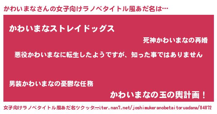| 意味不明あだ名 | 『住所不定無職かわいまな(56歳)』 |